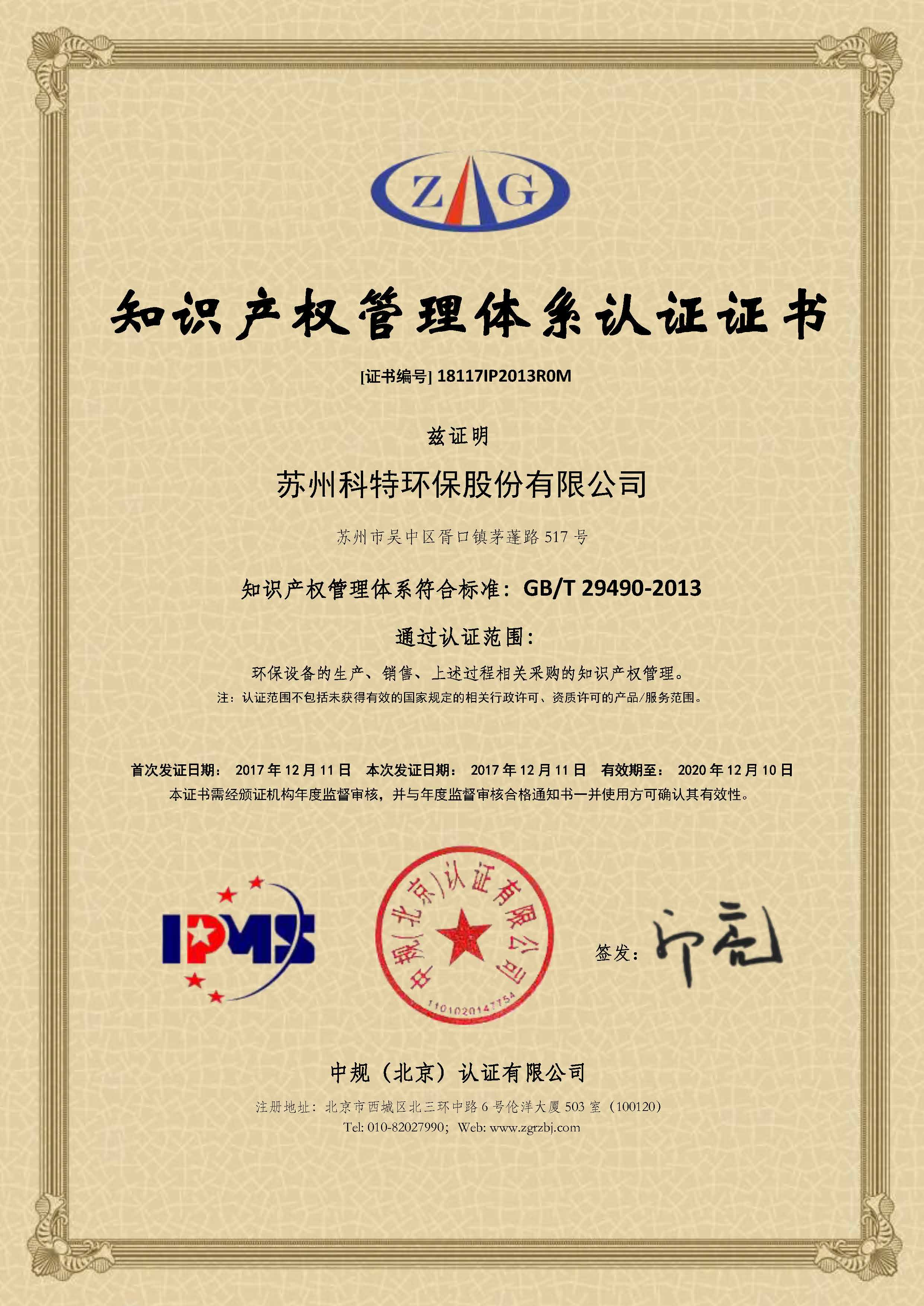 經(jīng)過一個(gè)多月的準(zhǔn)備和改正,蘇州科特環(huán)保順利通過現(xiàn)場審核,獲得知識產(chǎn)權(quán)管理體系認(rèn)證證書,今后我們將落實(shí)和不斷完善科特的知識產(chǎn)權(quán)管理的各項(xiàng)制度。