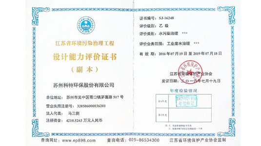 查看詳情 +6月5日,科特環(huán)保向江蘇省環(huán)境保護(hù)產(chǎn)業(yè)協(xié)會提交了“江蘇省環(huán)境污染治理工程設(shè)計(jì)能力評價(jià)”、“江蘇省環(huán)境污染治理工程總承包能力評價(jià)”及“江蘇省環(huán)境污染治理能力評價(jià)”三項(xiàng)資質(zhì)證書…